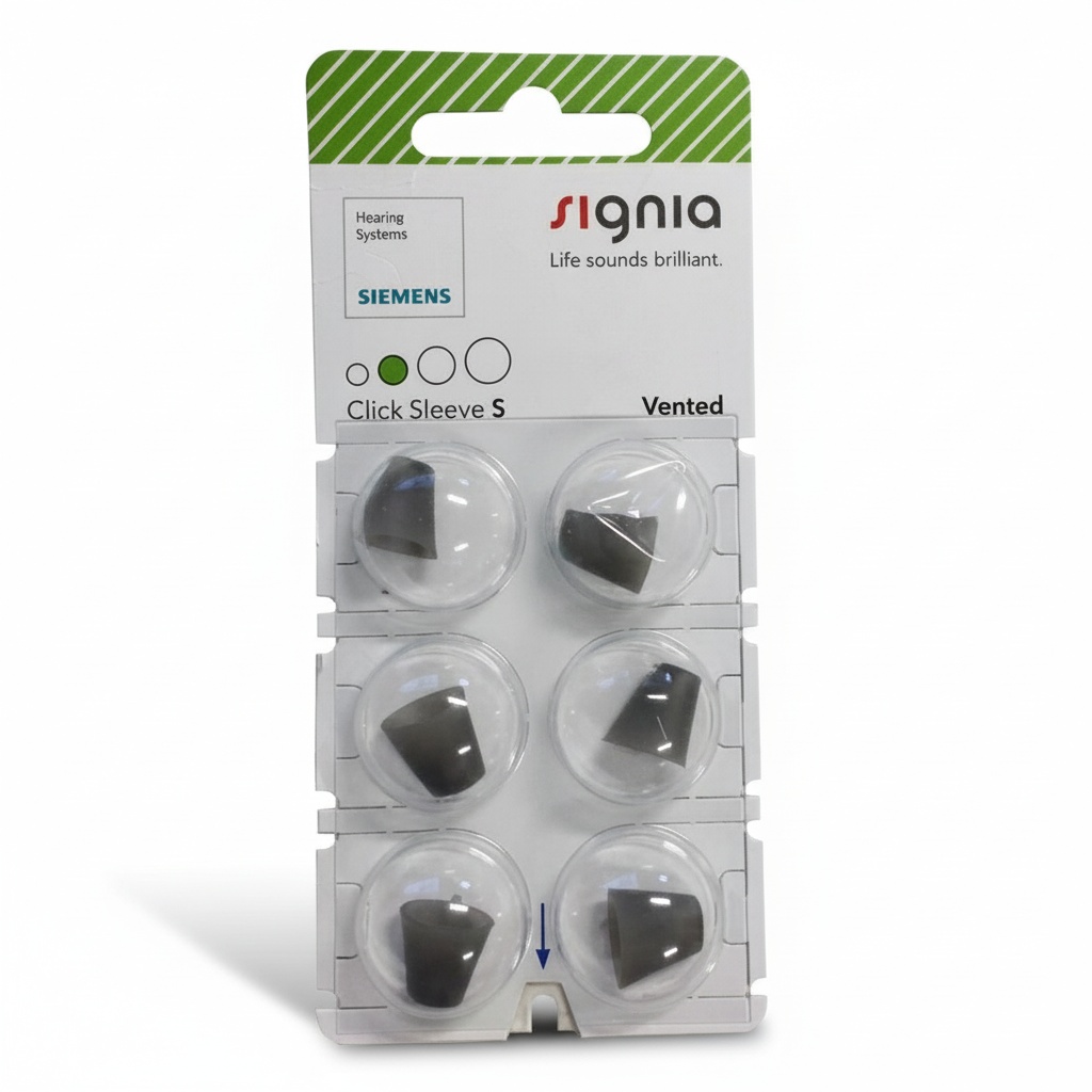 Signia Click Sleeves are domes for hearing aids that can be used with several of Signia’s hearing aids, such as Signia Silk, as well as regular in-the-ear receiver hearing aids. For Signia’s small Silk hearing aids, which are almost invisible inside the ear, the dome is placed on the hearing aid, ensuring a perfect fit for the ear canal. Furthermore, the anti-slip effect ensures that the hearing aids stay in the ear at all times. There are several versions of Signia Click Sleeves to choose from, including both an open and ventilated version.