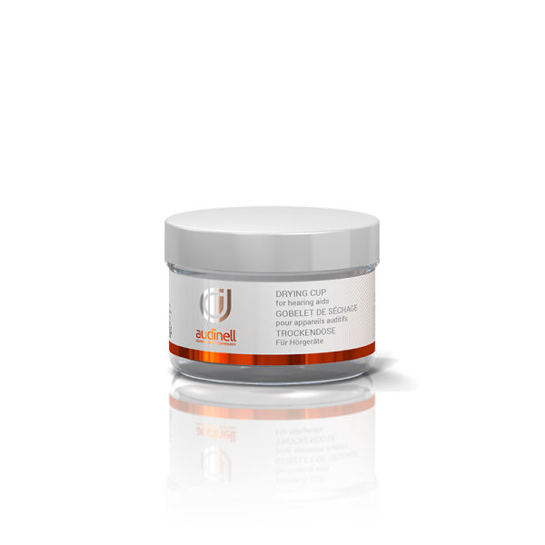 The drying cup from Audinell removes moisture from your hearing aids and should be used together with drying capsules. Together, they form the optimal drying system.